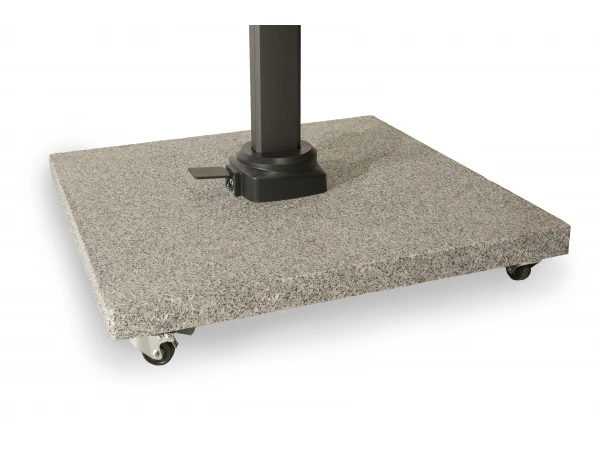 Deze parasolvoet van 120 kg is geschikt voor grote zweefparasols van 300 x 400 cm. De granieten voet heeft niet alleen een trendy design, het is ook een stevige basis voor de zwaardere parasols. Dankzij de wieltjes is hij bovendien gemakkelijk te verplaatsen.