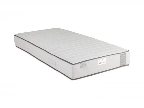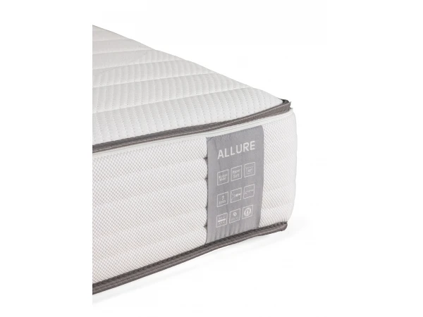 Matras Allure is een kwalitatieve hypoallergene, ergonomische pocketverenmatras. De hoes is gemaakt van Tencel, een natuurproduct gemaakt van eucalyptusvezels, anti-allergisch, anti-bacterieel, huidvriendelijk en vrij van chemische stoffen. Dankzij de uitmuntende vochtregulatie neemt ze 50% meer vocht op dan katoen. Naast een goede temperatuurregulatie is ze zo zacht als zijde. De pocketveren in 7 ergonomische comfortzones zorgen voor een optimale ondersteuning van het hele lichaam. Zo bezorgt matras Allure jou een welverdiende nachtrust.