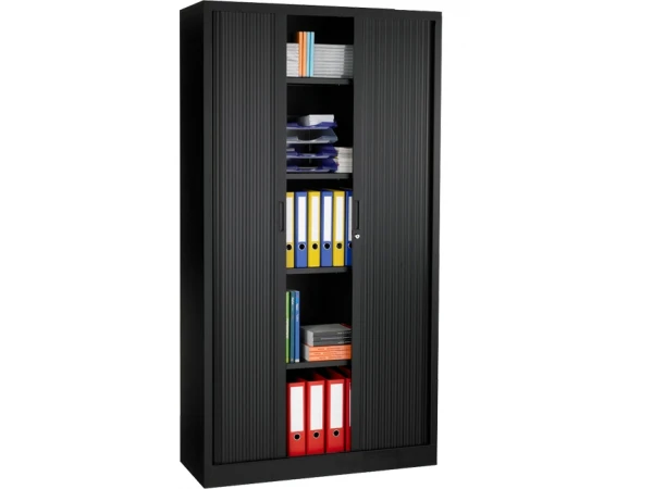 Strak, stijlvol en gebruiksvriendelijk. Zo omschrijf je deze metalen roldeurkast. Deze moderne roldeurkast is een handige en veilige manier om documenten in op te bergen. Deze roldeurkast heeft 4 legplanken en is afsluitbaar met slot en 2 sleutels. Deze bureaukast is beschikbaar in zwart, antraciet, grijs, aluminium en wit. Desgewenst kan de roldeurkast worden uitgebreid met hangmappenframe, uittrekbaar legbord, uittrekbare opberglade en extra legborden.