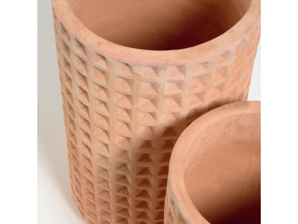 De Celi set bloempotten is wat je planten nodig hebben om buiten goed beschermd te zijn. Deze keramische bloempotten zijn gemaakt van terracotta, het materiaal van het moment. Het overtollige water wordt geabsorbeerd, waardoor het water dat de plant nodig heeft behouden blijft. Naast de unieke tinten en texturen van het materiaal, is terracotta een trendzettende kleur die de ruimte een natuurlijke uitstraling geeft.