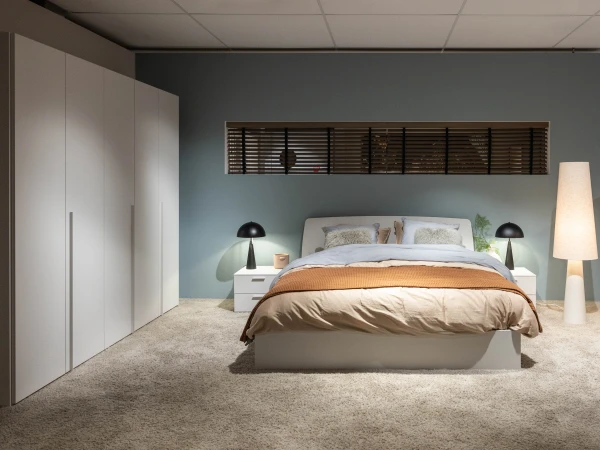 Laat je betoveren door de tijdloze elegantie van slaapkamer Cinquanta 3 van Richter Young Design. Met een bed dat uitnodigt tot dromen, twee nachtkastjes met elk twee handige lades en een ruime 5-deurenkast, straalt deze set pure klasse uit. De heldere witte kleur voegt een verfrissende lichtheid toe aan je slaapvertrek, terwijl het geheel een sfeer van rust en harmonie creëert. Met Cinquanta 3 haal je niet alleen een slaapkamer in huis, maar een oase van sereniteit en stijl.