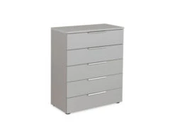 Deze stijlvolle grijze commode is van het merk Staud, dat bekend staat om zijn moderne slaapkamermeubelen uit Duitse topkwaliteit. De aluminium handgrepen geven het geheel een industriële look. Er zijn 5 lades waar je makkelijk jouw spullen in kan opbergen.