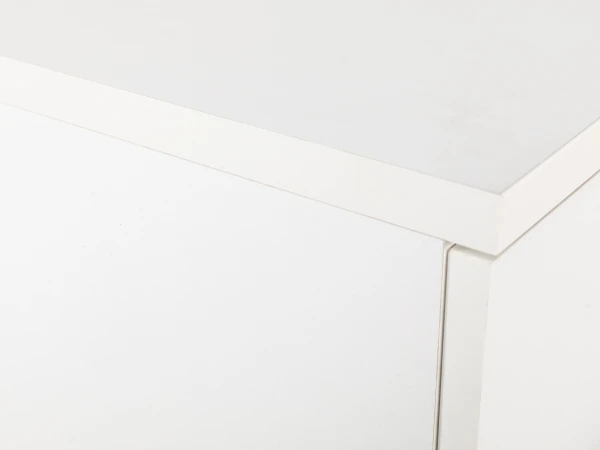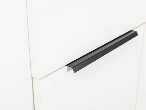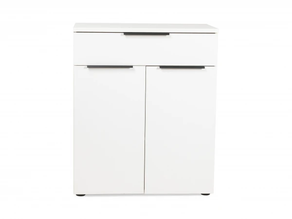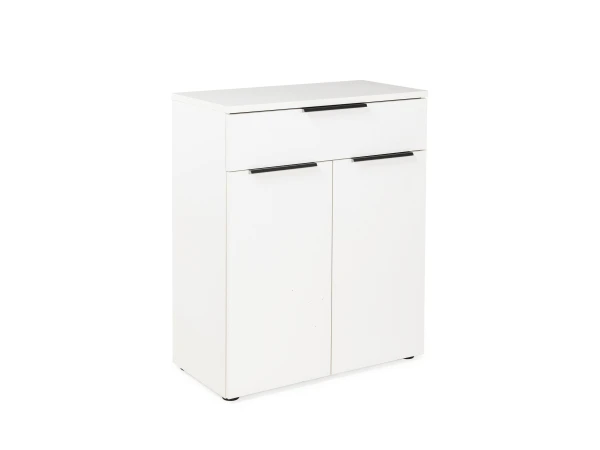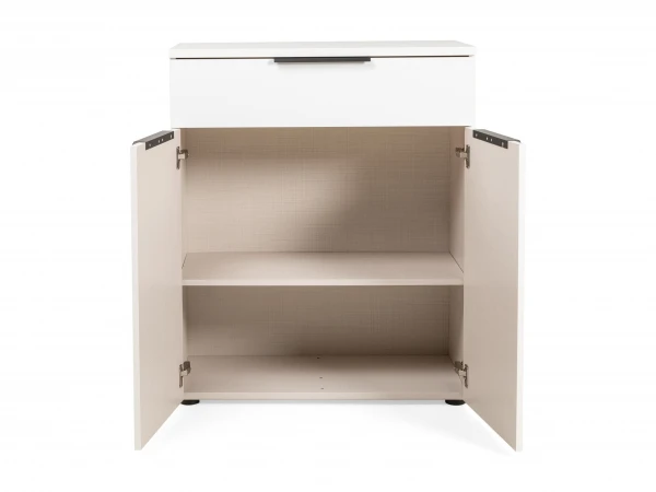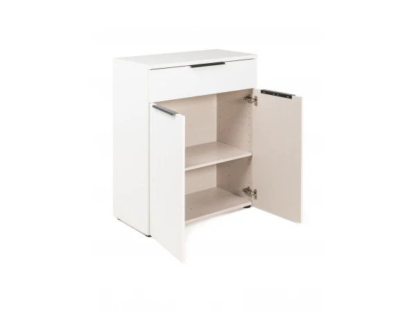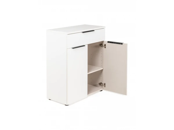 Deze stijlvolle witte commode is van het merk Staud, dat bekend staat om zijn moderne slaapkamermeubelen uit Duitse topkwaliteit. De zwarte handgrepen geven het geheel een industriële look. Er zijn 2 deuren en 1 lade waar je makkelijk jouw spullen in kan opbergen.