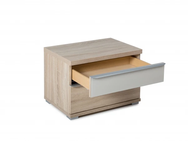 Dit nachtkastje hoort bij het bed Sinfonie Plus van Staud, maar past met zijn neutrale looks eigenlijk in elk interieur. Het nachtkastje is vervaardigd uit de houtskleur sonoma eiken, afgewerkt met aluminium handgrepen en een ladefront in glas. Het nachtkastje heeft 2 laden voor extra veel opbergruimte.