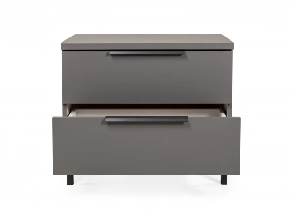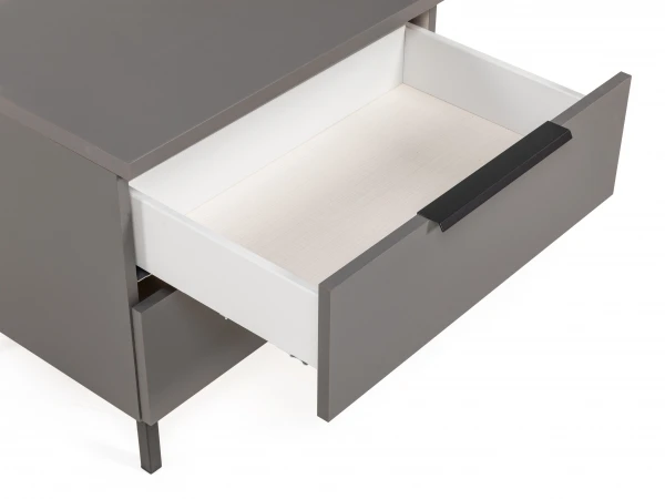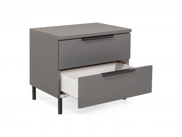 Deze stijlvolle grijze nachttafel is van het merk Staud, dat bekend staat om zijn moderne slaapkamermeubelen uit Duitse topkwaliteit. De zwarte metalen poten en handgrepen geven het geheel een industriële look. Er zijn 2 lades waar je makkelijk jouw favoriete boek in kan opbergen.
