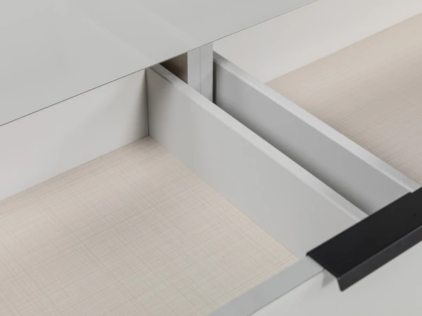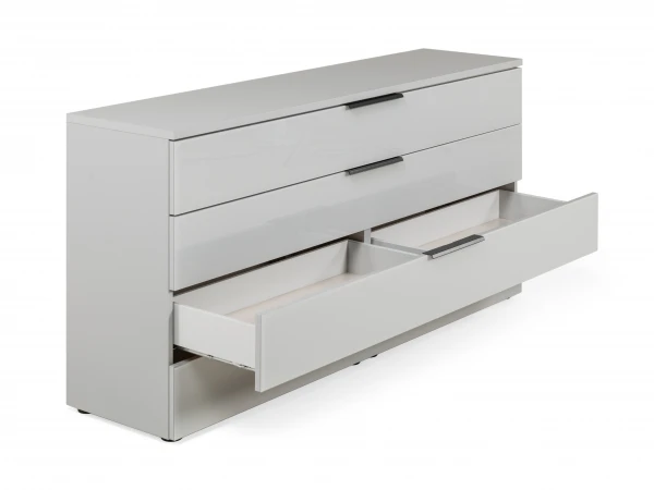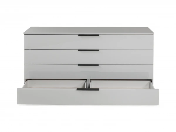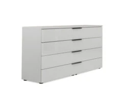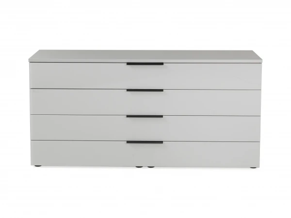 Deze stijlvolle grijze commode is van het merk Staud, dat bekend staat om zijn moderne slaapkamermeubelen uit Duitse topkwaliteit. De commode is extra groot met zijn 160 cm breedte. De zwarte handgrepen geven het geheel een industriële look. Er zijn 4 lades met telkens 2 onderverdelingen waar je makkelijk jouw spullen in kan opbergen.