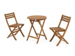 Op zoek naar een kleine tuinset voor je balkon of terras? Deze set van 2 tuinstoelen en tuintafel is niet alleen heel compact, hij is ook nog eens opvouwbaar! Zo kun je hem gemakkelijk opbergen en weer uitstallen wanneer je wilt genieten van enkele zonnestralen, alleen of met twee. Deze houten tuinset is dan ook perfect voor een klein balkon of terras. Deze tafel met 2 stoelen is gemaakt van massief duurzaam acaciahout. Met unieke tinten en nerven in elk stuk, afkomstig uit duurzame bossen en gecontroleerde houtkap. Het hout is behandeld met olie, voor een betere weerstand en duurzaamheid, en met een perfecte afwerking met teakhouten effect.