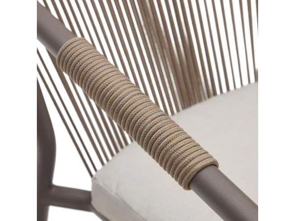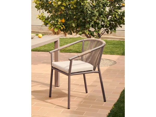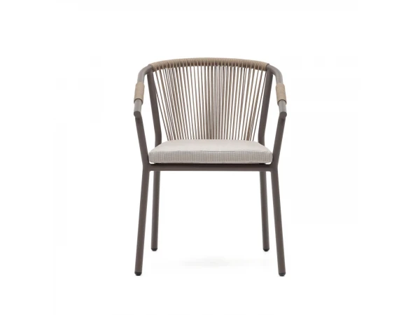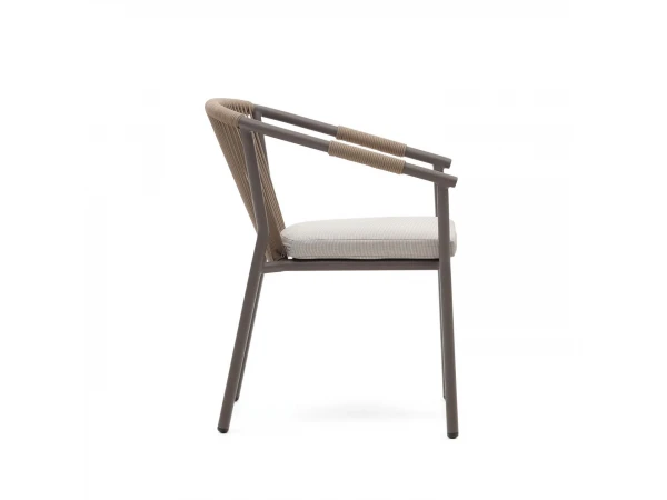 Geniet van het zonnetje buiten met tuinstoel Xelida van Kave Home! De stoel heeft een aluminium structuur waardoor het bestand is tegen roest en UV-stralen. Wat wil zeggen dat Xelida 100% geschikt is voor buitengebruik. Het koorddetail op de rugleuning zorgt voor een moderne en elegante look. De stoel is in twee kleuren beschikbaar: zwart en bruin. Je krijgt er ook een verwijderbaar en waterafstotend kussen bij. Combineer de stoel met de rest van de collectie om zo een mooi geheel te creëren!