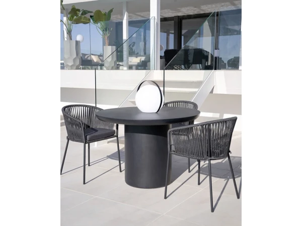 Taimi is een prachtige ronde tuintafel van Kave Home. Deze tafel is gemaakt van beton en heeft een stoere zwarte afwerking, waardoor hij zowel binnen als buiten gebruikt kan worden. Met zijn brede ronde centrale poot biedt Taimi stabiliteit en stevigheid, terwijl de licht afgeronde randen van het tafelblad voor een elegante uitstraling zorgen. Het ronde ontwerp creëert een gezellige sfeer en maakt het perfect om te combineren met andere tuinmeubels. Met Taimi kun je genieten van heerlijke diners, barbecues en andere sociale gelegenheden in stijl!
