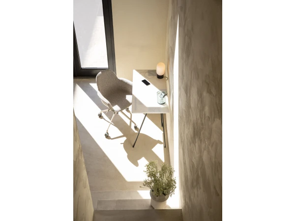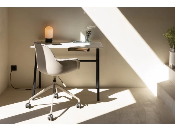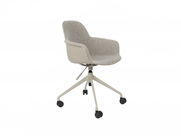 De Albert Kuip Office bureaustoel in bouclé stof is helemaal aangepast aan de laatste interieurtrends! Een ideale bureaustoel voor de neem-je-stoel-mee-naar-het-werk-dag. Of hou hem gewoon op je thuiswerkplek! De Albert Kuip bureaustoel is een speciale versie van Zuiver, ontwikkeld door ontwerpstudio APE. Werken én ontspannen, daar is de Albert Kuip Office voor gemaakt. Zo is de zitting gestoffeerd en voorzien van een padding voor meer comfort. Deze bureaustoel is er met of zonder armleuningen en, helemaal fantastisch, met wielen, draaivoet en een gasveer om hem in hoogte te verstellen.