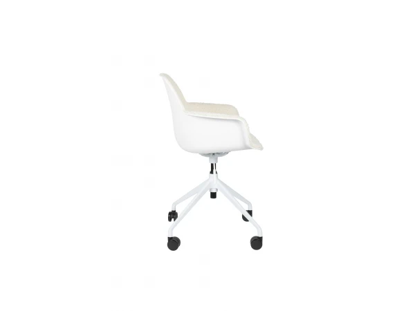De Albert Kuip Office bureaustoel in bouclé stof is helemaal aangepast aan de laatste interieurtrends! Een ideale bureaustoel voor de neem-je-stoel-mee-naar-het-werk-dag. Of hou hem gewoon op je thuiswerkplek! De Albert Kuip bureaustoel is een speciale versie van Zuiver, ontwikkeld door ontwerpstudio APE. Werken én ontspannen, daar is de Albert Kuip Office voor gemaakt. Zo is de zitting gestoffeerd en voorzien van een padding voor meer comfort. Deze bureaustoel is er met of zonder armleuningen en, helemaal fantastisch, met wielen, draaivoet en een gasveer om hem in hoogte te verstellen.